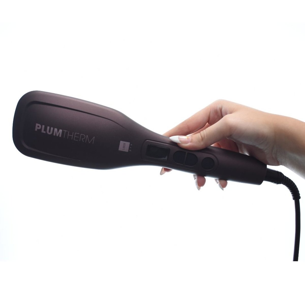 A escova térmica Plum Therm combina múltiplas qualidades em um único produto: alisa como uma prancha e desembaraça como uma escova, tudo com total segurança, sem risco de queimaduras durante o uso. Equipado com um termostato digital posicionado na parte traseira, permite ajustar a temperatura entre 100°C e 200°C, garantindo versatilidade para diferentes tipos de cabelo e necessidades de styling.
