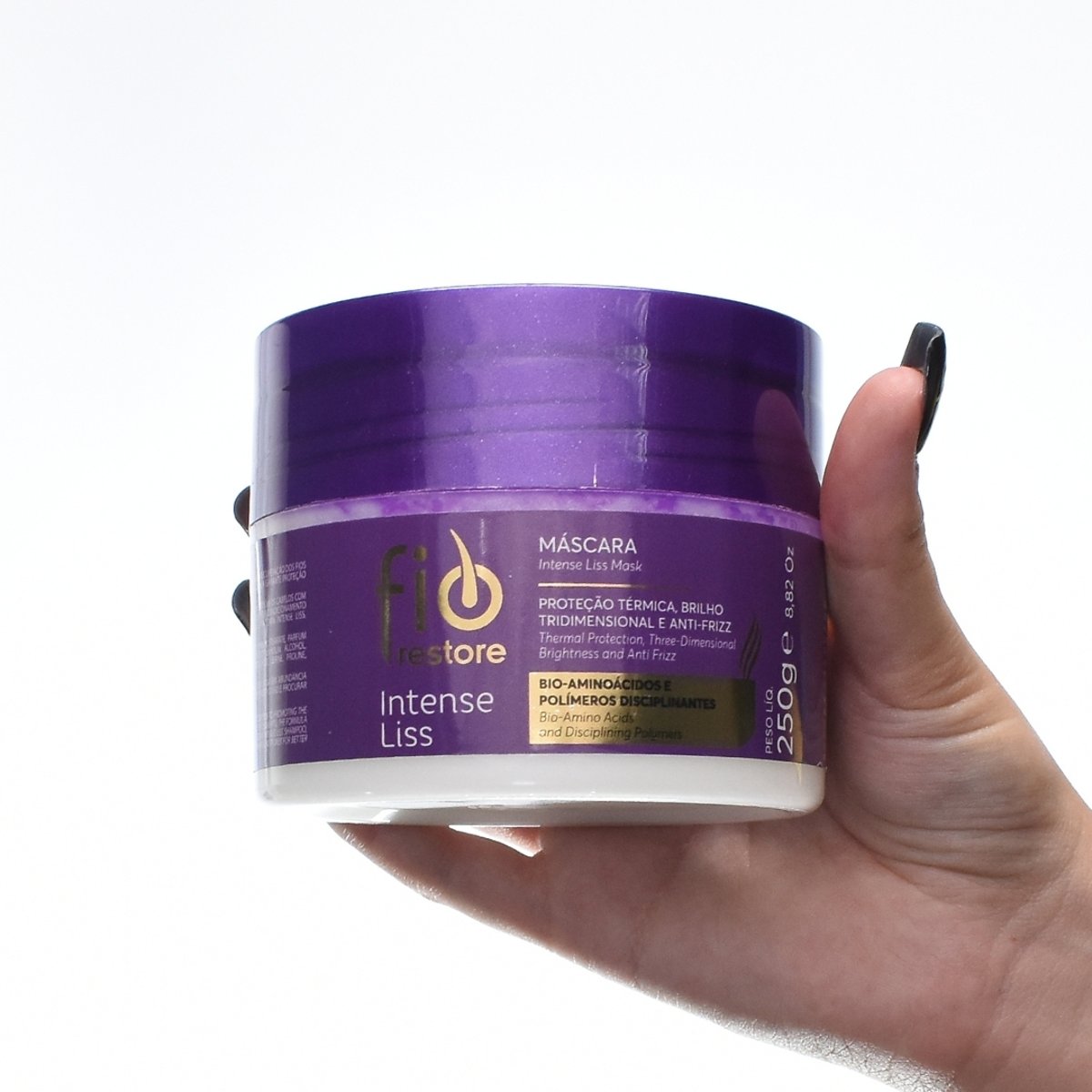 Proporcione proteção térmica e brilho tridimensional aos seus cabelos com a Máscara Intense Liss Fio Restore. Esta fórmula de 250g, enriquecida com Biotina e Poliquatérnio, oferece ação anti-frizz e hidratação intensa, ideal para manter os cabelos lisos, brilhantes e saudáveis.