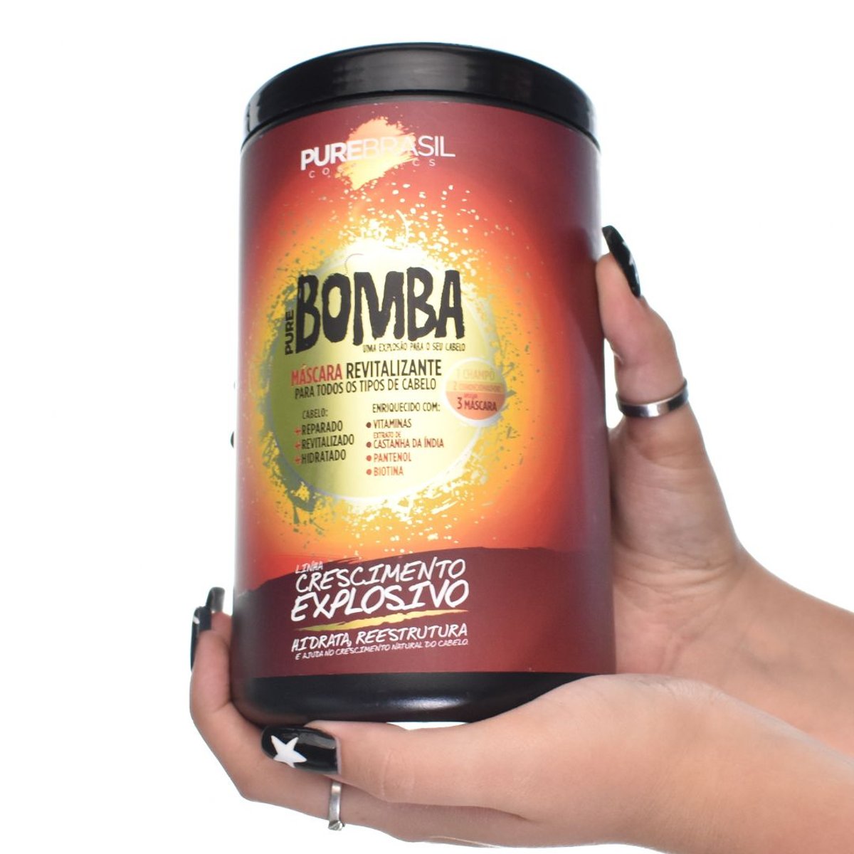 A Máscara Revitalizante Pure Bomba é projetada para proporcionar um crescimento explosivo e saudável ao cabelo. Com uma fórmula nutritiva e hidratante, esta máscara revitaliza todos os tipos de cabelo, reestruturando e fortalecendo os fios. Ideal para quem busca um cabelo mais forte, brilhante e cheio de vida, garantindo uma hidratação intensa e duradoura.