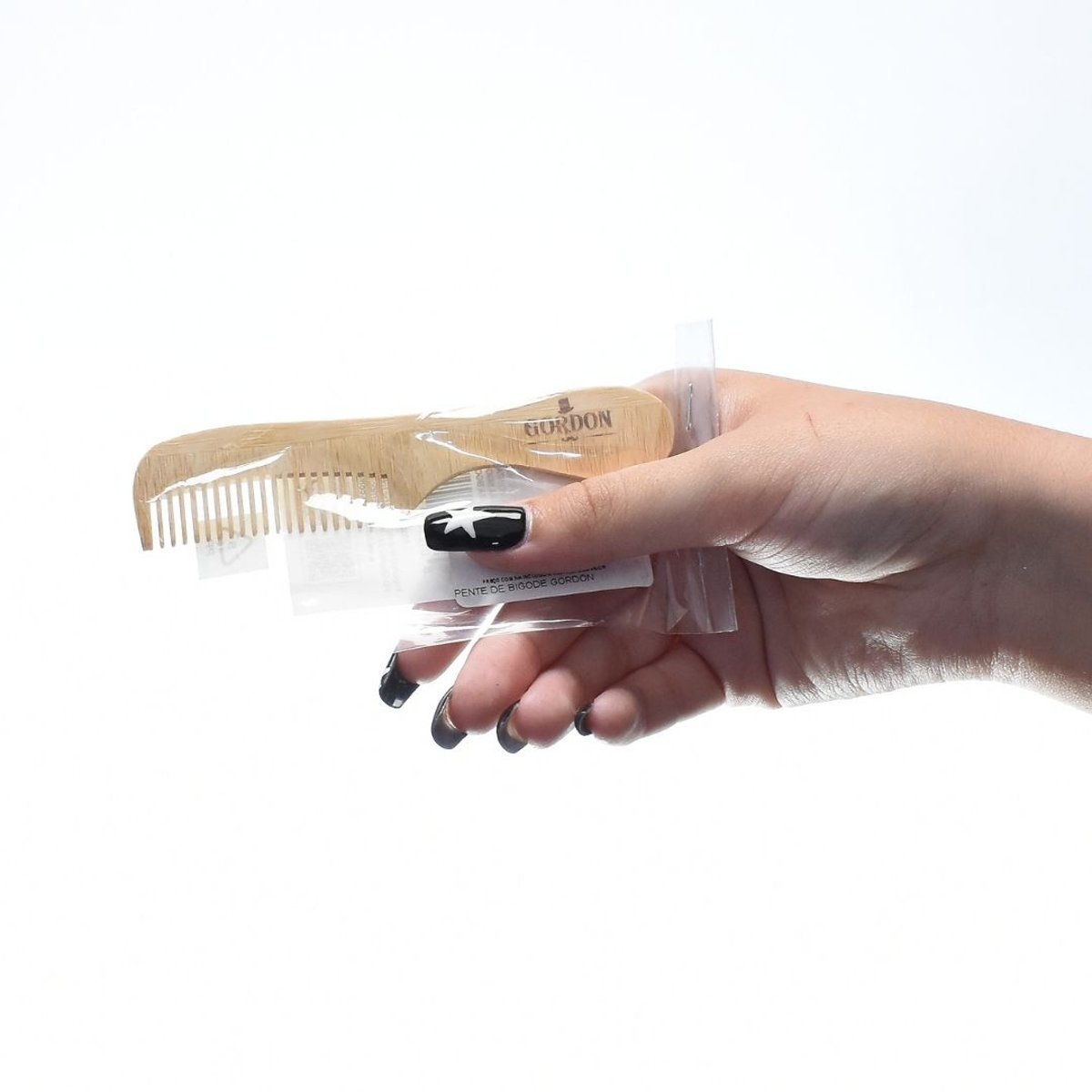 Estilize a sua barba com o Pente para Barba Gordon. Fabricado em madeira durável, este pente é perfeito para desembaraçar e modelar a barba sem causar danos. Compacto e portátil, é ideal para manter a barba impecável em qualquer lugar.